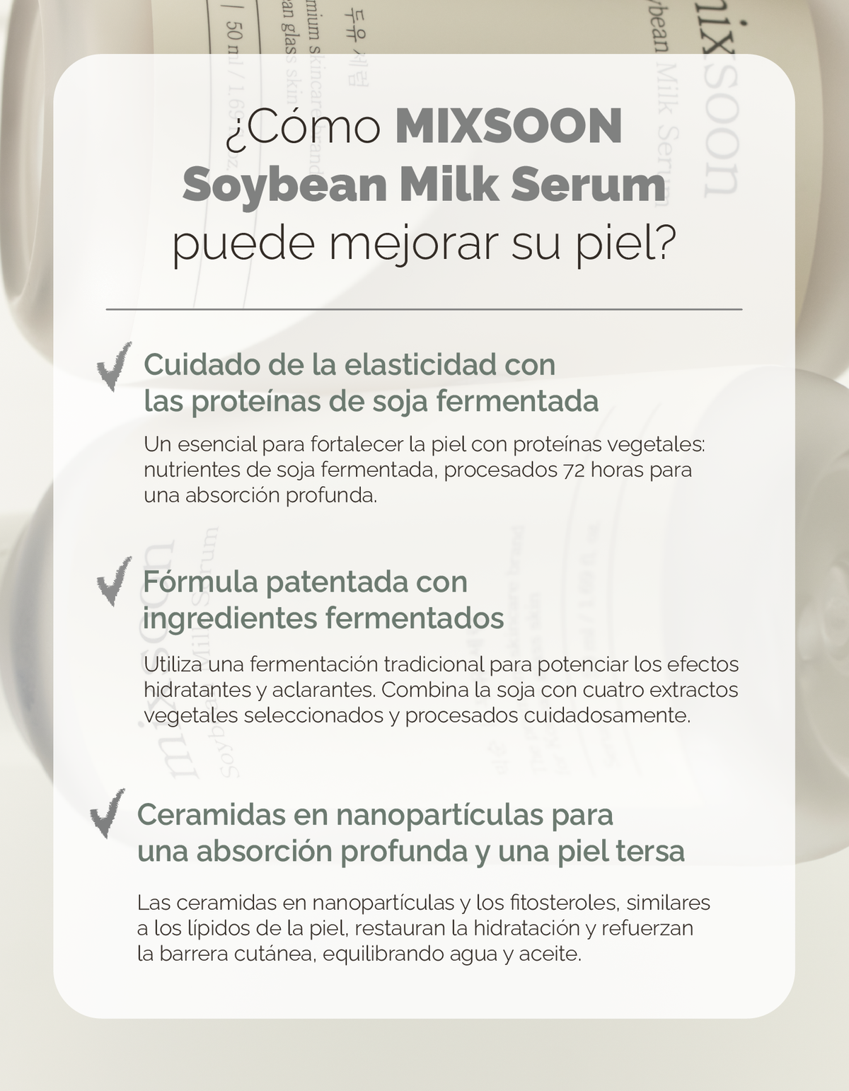 Como esta esencia utiliza soja fermentada, la textura es pegajosa y fibrosa, pero se extenderá y absorberá rápidamente para dejar tu rostro con un aspecto translúcido, sin dejar una sensación grasosa o pegajosa, dejando un acabado refrescante.